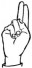 На ћирилици написано УНА ЧОБЕЛИЋ састоји се из 10 слова [?]. Исписано ћириличном једноручном азбуком за глувонеме: